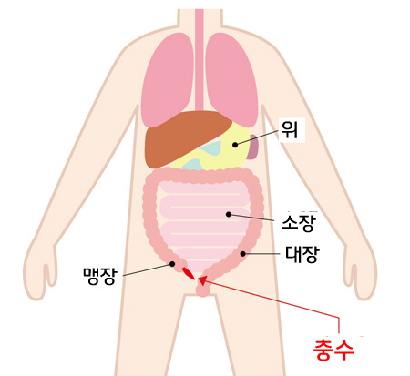 맹장의 약간 아래 끝에 늘어진 가는 맹관을 충수, 충수돌기라고 하는데, 맹장에 붙는 위치나 길이는 개인차가 크다네요. 우리가 흔히 말하는 맹장염은 사실 충수염이 바른 표현이라는군요.