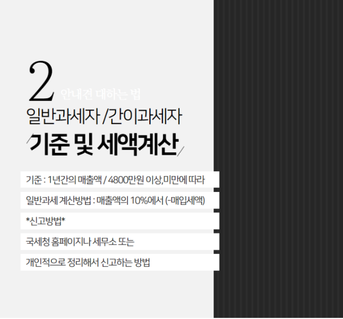개인 사업을 준비하는 분들이 정말 많습니다. 개인 매장을 준비하거나 창업을 시작하는 분들은 자신이 납부하게 될 세금에 대한 정보를 미리 알아두는 것이 도움이 됩니다. 그래서 오늘은 사업자가 납부하는 세금 중에서 부가가치세 의 기본 정보에 대해서 알아보는 시간을 가지고자 합니다. 우리는 일상에서 물건을 구매하거나 판매할 때 VAT 별도라는 말을 접하게 됩니다. 이는 Value Added Tax의 줄임말인 VAT로 바로 부가가치세를 말하는 겁니다.